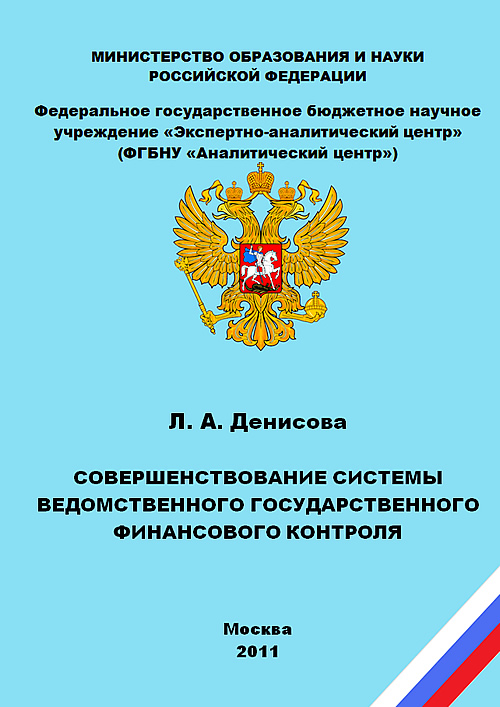 Год публикации: 2011 Денисова Л. А. Совершенствование системы ведомственного государственного финансового контроляМонография / Под науч. ред. д-ра экон. наук, проф. Э. Н. Яковлева. – М.: ФГБНУ «Аналитический центр» Минобрнауки России, 2011. – 104 с. (ISBN 978-5-904670-12-2). В книге излагаются результаты исследований по проблеме совершенствования методологии контрольных функций системы ведомственного государственного финансового контроля Российской Федерации и вносятся предложения по развитию системы реального мониторинга и проверки финансово-хозяйственной деятельности организаций, подведомственных Минобрнауки России.