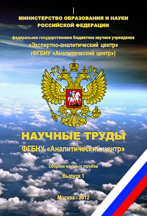 Год публикации: 2012 Научные труды ФГБНУ «Аналитический центр»Сборник научных трудов [продолжающееся издание]. – М.: ФГБНУ «Аналитический центр» Минобрнауки России, 2012. – Вып. 1. – 108 с. (ISBN 978-5-904670-20-7). Издание представляет собой сборник научных статей и иных видов научных работ, подготовленных научными сотрудниками ФГБНУ «Аналитический центр» и других учреждений-участников государственных программ анализа и оценки финансово-хозяйственной деятельности и поддержки выполнения научно-исследовательских работ и образовательных программ в организациях, подведомственных Минобрнауки России. Книга предназначена для специалистов и руководителей образовательных и инновационных научно-технических учреждений. В сборник включены работы авторов, выполненные в 2011-2012 гг.