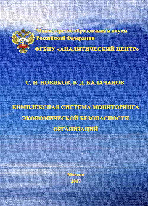 Год публикации: 2017 Новиков С. Н. Комплексная система мониторинга экономической безопасности организацийМонография / С. Н. Новиков, В. Д. Калачанов. – М.: ФГБНУ «Аналитический центр» Минобрнауки России, 2017. – 255 с. (ISBN 978-5-904670-37-5). Монография посвящена исследованию концептуально-методических подходов к решению проблем обеспечения экономической безопасности в деятельности организаций наукоемких высокотехнологичных отраслей промышленности и головных инженерно-технических, технологических и научно-исследовательских вузов (университетов, институтов и академий) Минобрнауки России. Рассмотрены вопросы создания и функционирования единой системы управления и мониторинга экономической безопасности производства в организациях с использованием принципов и процедур финансового, информационного инновационного, социально-экономического и производственного менеджмента при разработке и производстве конкурентоспособной наукоемкой техники.