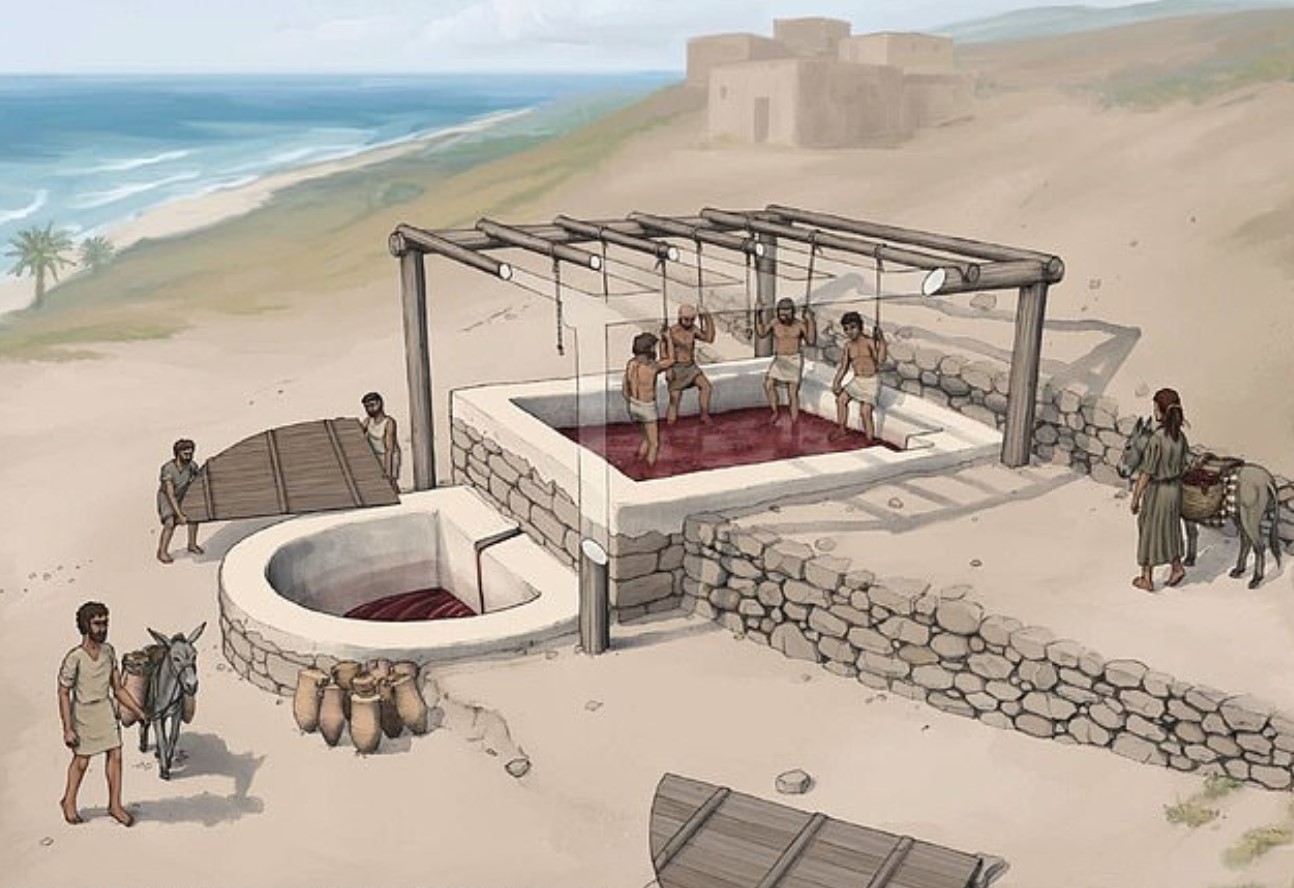 Во время раскопок древнего поселения Телль-эль-Бурак недалеко от города Сидон в Ливане археологи обнаружили пресс для вина, датируемый 7 веком до нашей эры, который был построен из гипса, полученного путем смешивания извести и переработанной керамики.
