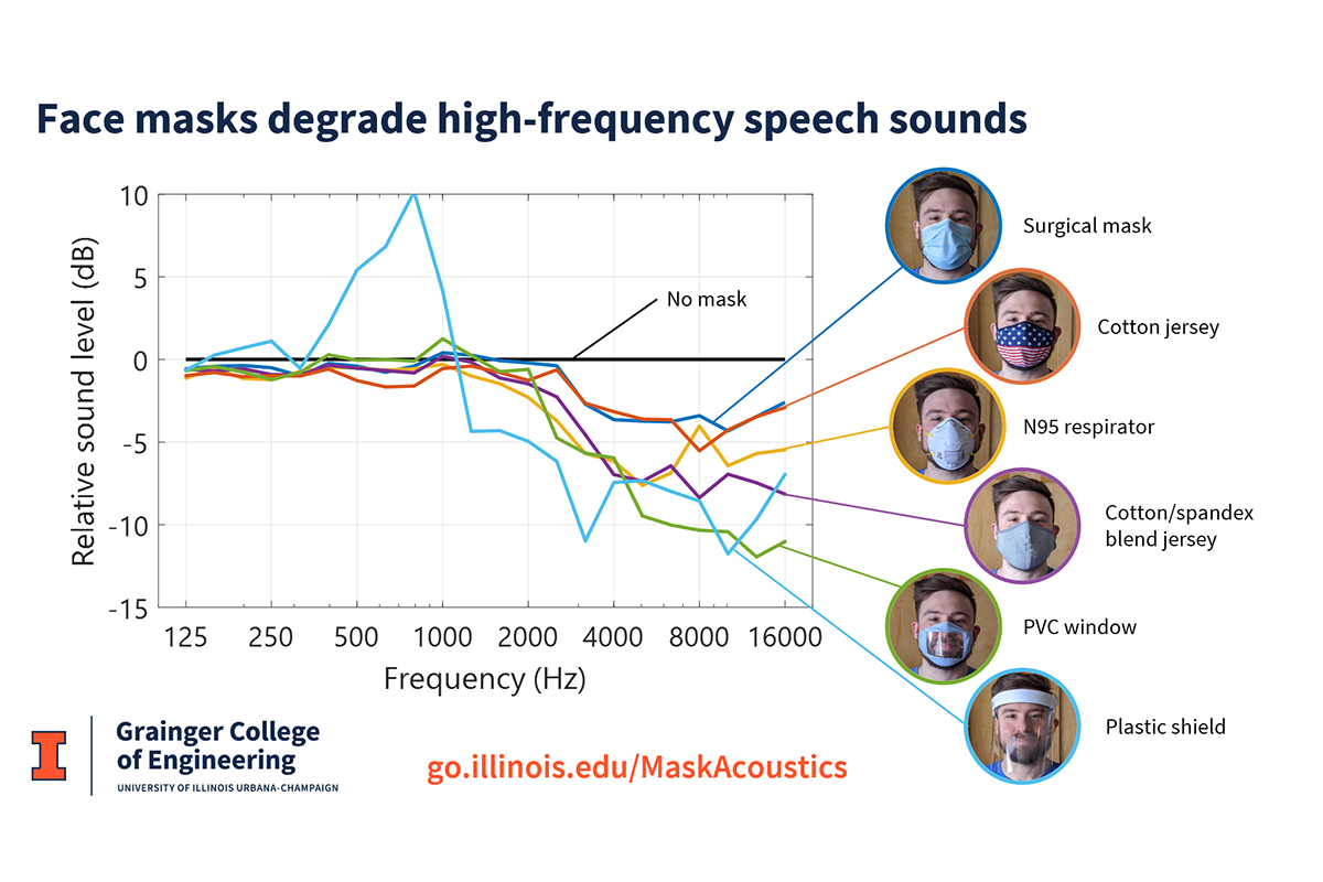 Эксперимент показал, что все маски заглушают тихий высокочастотный звук, возникающий, когда человек произносит согласные. Маски блокируют визуальные сигналы, такие как выражение лица и движение губ, поэтому читать речь невозможно. По словам Кори, почти все в той или иной степени используют чтение речи, с потерей слуха или без нее. Исследование показало, что одноразовые хирургические маски обладают лучшими акустическими характеристиками среди всех протестированных. Это исследование показало, что плотно сплетенный хлопок и смешанные ткани могут блокировать больше капель, но команда Кори обнаружила, что они также блокируют больше звука. Хорошая новость заключается в том, что большинство масок не полностью блокируют звук, они просто отклоняют его ото рта. То есть, простые технические устройства усиления могут сделать замаскированную речь более доступной для всех. В частности, лацкановые микрофоны, которые уже используются во многих классах и лекционных залах, на которые маски для лица лишь незначительно влияют. Источник: news.illinois.edu
