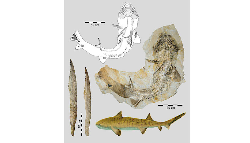 Дата публикации: 21 января 2021 г. Венский университет: ученые нашли одну из самых крупных акул, которая жила 150 миллионов лет тому назадМеждународная группа исследователей главе с Себастьяном Штумпфом (Sebastian Stumpf) из Венского университета (University of Vienna) обнаружила исключительно хорошо сохранившийся скелет древней акулы Asteracanthus. Статья об исследовании опубликована в журнале «Papers in Palaeontology». Известняки Зольнхофен в Баварии, Германия, где обнаружен скелет акулы, образовались около 150 миллионов лет назад. Они всемирно известны тем, что сохранили скелеты небольшого пернатого динозавра Археоптерикса и многочисленные скелеты акул и скатов, обнаруженные во время раскопок за последние 150 лет. Останки, найденные палентологом С. Штумпфом представляет собой практически полностью сохранившийся скелет вымершей гибодонтиформной акулы Asteracanthus, общая длина которой при жизни составляла два с половиной метра, что делало ее гигантом среди юрских акул. Гибодонтиформные акулы, которые являются ближайшими родственниками современных акул и скатов, впервые появились во время последнего девона, около 361 миллиона лет назад, и вымерли вместе с динозаврами в конце мелового периода, около 66 миллионов лет назад. У них было два спинных плавника, каждый поддерживаемый выступающим шипом. Размер тела гибодонтиформных акул колеблется от нескольких сантиметров до примерно трех метров в максимальной длине, что, следовательно, делает Asteracanthus одним из крупнейших представителей как своей группы, так и своего времени Астеракант был научно описан более 180 лет назад американским натуралистом швейцарского происхождения Луи Агассисом на основе изолированных ископаемых шипов спинного плавника. Однако сочлененные скелетные останки никогда не находили - до сих пор. Зубной ряд скелета исключительно хорошо сохранился и содержит более 150 зубов, каждый с хорошо развитым центральным бугорком, который с обеих сторон сопровождается несколькими более мелкими бугорками. «Этот специализированный тип зубов позволяет предположить, что астераканты были активным хищником, питающимся широким кругом хищных животных. Астераканты, безусловно, были не только одной из крупнейших хрящевых рыб своего времени, но и одной из самых впечатляющих». - говорит Себастьян Штумпф. Источник: medienportal.univie.ac.at