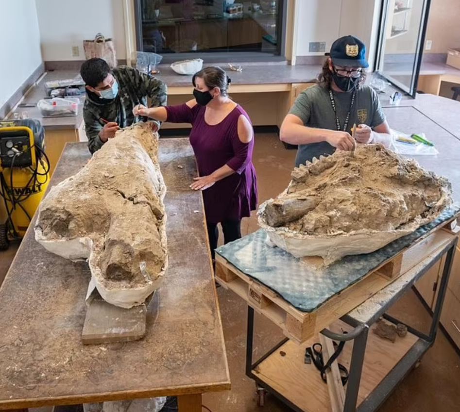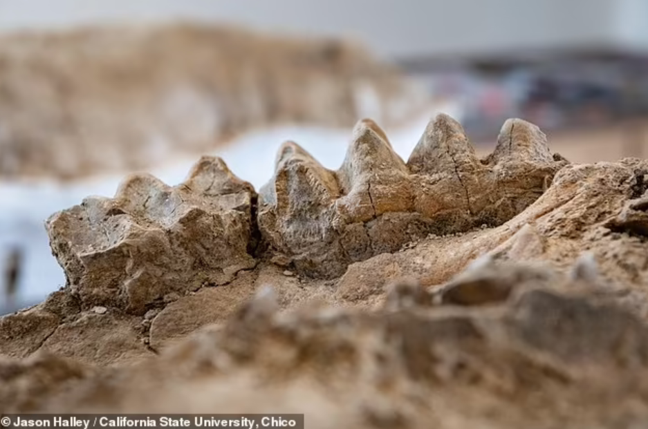 Дата публикации: 25 мая 2021 г. #США Университет штата Калифорния: смотритель парка обнаружил доисторические окаменелости 122-метрового «лосося-монстра»В Калифорнии была найдена «сокровищница» окаменелостей, в том числе прекрасно сохранившийся череп мастодонста и останки 400-фунтового (121,92 м) «лосося-монстра» . Сокровищница окаменелостей, включая прекрасно сохранившийся череп мастодонта (чьи зубы изображены) и останки 400-фунтового «лосося-монстра» были найдены в Калифорнии. Лесничий Грег Франсек (Greg Francek) наткнулся на доисторический лес прошлым летом, гуляя по водоразделу реки Мокелумне (Mokelumne River), недалеко от гор Сьерра (Sierra mountains). С тех пор исследователи обнаружили останки около 600 окаменелых деревьев и десятков видов животных, включая предка слона и верблюда размером с жирафа. По оценкам экспертов, это место, датируемое примерно 10 миллионами лет назад эпохой миоцена, является одним из самых значительных, когда-либо найденных в Калифорнии. Исследователи обнаружили останки около 600 окаменелых деревьев и десятков видов животных, в том числе зуб мастодонта (на фото), предка слона и верблюда размером с жирафа. На данный момент его точное местонахождение хранится в секрете, чтобы защитить артефакты, пока они не будут безопасно извлечены из земли для надлежащего анализа. Череп мастодонта планируется выставить в Университете штата Калифорния (California State University), в Музее науки «Ворота Чико» (Chico's Gateway Science Museum) осенью этого года., Палеонтологи раскопали на этом месте останки около 600 окаменелых деревьев и десятков видов животных, в том числе прекрасно сохранившийся череп мастодонта с зубами и бивнями, а также 400-фунтовый «лосось-чудовище» Эксперты заявили, что это ископаемое, датируемое примерно 10 миллионами лет назад эпохой миоцена, является одним из самых значительных, когда-либо обнаруженных в Калифорнии. На снимке зубы мастодонта, найденные палеонтологами в неизвестном месте у реки Мокелумне. По словам исследователей, на этом месте когда-то находился дубовый лес, окруженный океаном. Они объяснили, что кости доисторических существ, которых команда нашла среди ныне окаменевшего леса, были перенесены в регион наводнениями и потоками вулканического мусора, идущими из более отдаленных районов страны. Профессор, палеонтолог Рассел Шапиро из Университета штата Калифорния и команда ученых под его руководством особенно удивлены находкой хорошо сохранившегося мастодонта. Череп мастодонта (на фото с бивнями слева и остальной частью черепа справа) будет выставлен в Государственном университете Калифорнии, в Музее науки Чико. Источник: dailymail.co.uk