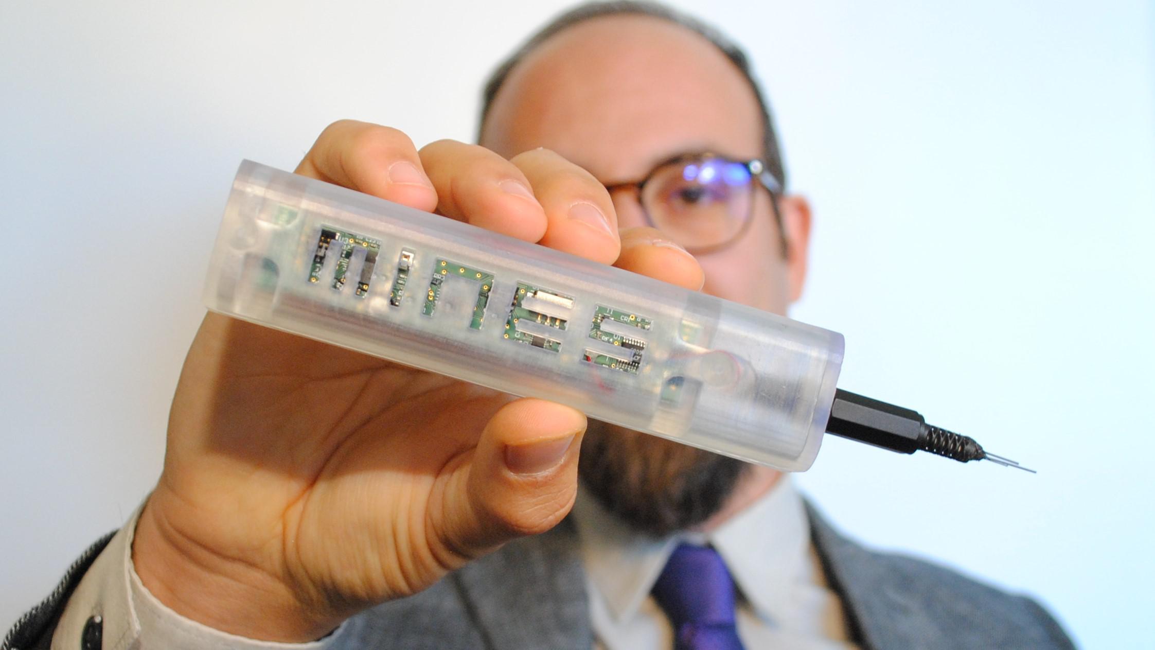 Устройство исследователей выглядит как огромный шприц. Его игла содержит сенсорные электроды, которые измеряют концентрацию пропофола в крови пациента, а электроника для сенсоров, разработанная в LSI, находится в центральном пульте управления. Измерения датчиков анализируются с помощью искусственного интеллекта. Результаты исследования опубликованы в IEEE Transactions on Biomedical Circuits and Systems. Источник: actu.epfl.ch