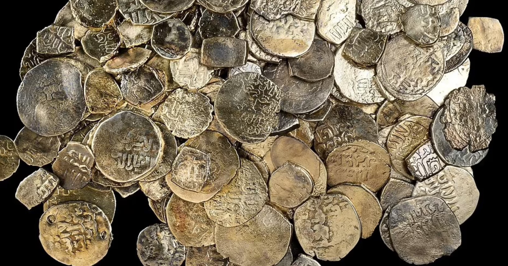 Кольцо, которому 1700 лет, было найдено среди кладова римских монет III века, а также бронзовой фигурки орла, колокольчиков для отпугивания злых духов, керамики и римской фигурки пантомима в комической маске (на фото) Источник: dailymail.co.uk