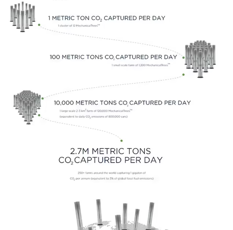 Дата публикации: 27 января 2022 г. #США Университет штата Аризона: механическое дерево лучше натуральногоПо утверждению ученых из Университета штата Аризоны, механические деревья, со слоями дисков, предназначенных для «поглощения углекислого газа», смогут предотвратить изменение климата. Изображение: источника. Разработанные Клаусом Лакнером (Klaus Lackner), профессором инженерии Университета штата Аризоны (Arizona State University), «деревья» в тысячи раз более эффективны, чем природные разновидности. Механическое дерево представляет собой, высокую вертикальную колонну дисков, каждый около 5 футов (1,52м) в диаметре. Диски расположены и на расстоянии двух дюймов (0,2м) друг от друга, покрыты химической смолой и размещены как стопка виниловых пластинок. Эта смола улавливает CO2 из воздуха, после заполнения она попадает в бочку, где CO2 испаряется и помещается в закрытую среду. Далее, СО2 (углекислый газ) можно использовать для производства синтетического топлива, которое затем можно использовать в самолетах, что снижает спрос на нефть и газ. Профессор Лакнер планирует создать три крупных механических фермы по выращиванию деревьев, первая из которых должна открыться в Аризоне в конце этого года. Как только все три будут введены в эксплуатацию, они смогут поглощать 1000 тонн CO2 в день, что считается важным шагом в балансировании мирового углеродного баланса.