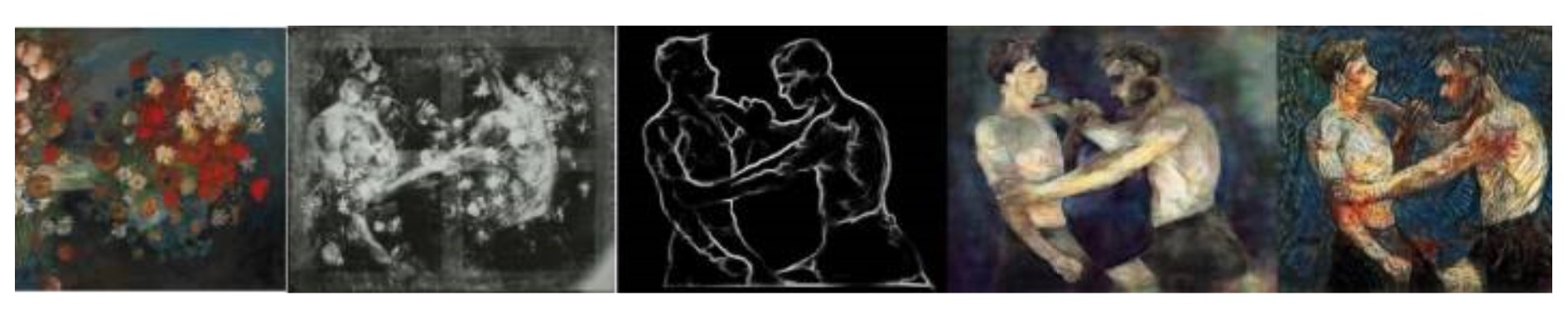 «Новая» работа мастера, получившая название «Два борца», изображает двух борцов без рубашки, сражающихся на абстрактном фоне. Холст использовался дважды, специалисты обнаружили борцов, под картиной с цветами. «Насколько это похоже на оригинальную картину, на данный момент невозможно сказать, потому что информации не существует. Я думаю, что это очень убедительно — лучшее предположение, которое мы можем получить с помощью современных технологий», - сказал Э.Бурашед, который исследует машинное обучение и поведенческую неврологию в UCL. Источник: ucl.ac.uk