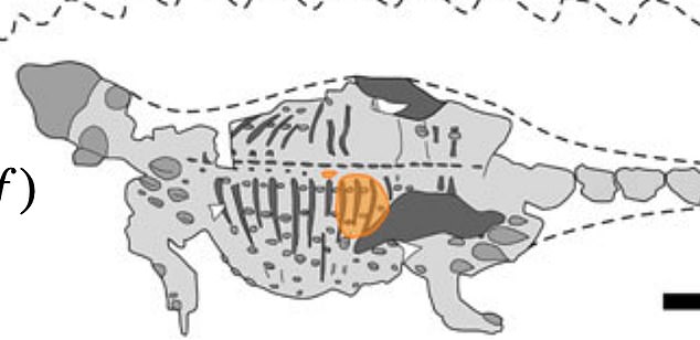 Дата публикации: 06 июня 2020 г. Университет Саскачевана: ученые узнали меню бронированного динозавра жившего 110 миллионов лет тому назадПоследний ужин бронированного динозавра, который умер 110 миллионов лет тому назад, состоял в основном из листьев папоротника. Окаменелые остатки растений были обнаружены учеными из университета Саскачевана (University of Saskatchewan) в кишечнике костяного бореалопельта маркмитчелла (Borealopelta markmitchell). Согласно исследованию останков, 18-футовый (5,49 м) бронированный динозавр, который умер 110 миллионов лет тому назад, последний раз ел листья папоротника. Огромный бронированный зверь, когда был жив, весил до полутора тонн, и несмотря на свою массу, это был придирчивый едок. Borealopelta поедали различные растения, но предпочитали листья папоротника. Это первое прямое доказательство диеты травоядного динозавра, проливающее свет на образ жизни крупнейших животных. Ученые из Университета Саскачевана обнаружили в окаменелой кишке последнюю еду покрытого костями маркмитчелла Borealopelta. Это изображение показывает остатки кишечника В результате исследования окаменелых кишок был обнаружен древесный уголь на некоторых пищевых фрагментах, которые, по словам команды ученых, также показывают, что Бореалопельта «обедали» в местности, которая пострадала от вызванного молнией лесного пожара. Это было бы еще одной постоянной опасностью во влажном субтропическом климате, наряду с необходимостью прятаться от хищников. Сильно изогнутая спина Бореалопельта была покрыта колючими шипами, с двумя более длинными отростками на плечах размером около 20 дюймов (0,51 м). По словам исследователей, внешний вид динозавра помогал привлечь внимание друзей и отогнать соперников. Внешне напоминая гигантский ананас, существо принадлежало группе похожих на танк монстров, называемых нодозаврами. По словам соавтора исследования, профессора Джима Бейсингера (Jim Basinger) из Университета Саскачевана (University of Saskatchewan), «фактическое сохранение желудка чрезвычайно редкое явление». «Этот желудок, извлеченный командой музея из мумифицированного нодозавра, на сегодняшний день является самым хорошо сохранившимся желудком динозавра, когда-либо найденным на сегодняшний день», - сказал он. Он содержал характерную массу растительности размером с футбольный мяч. Переваренная пища редко встречается в ископаемых останках, поскольку со временем она обычно разлагается, что и делает это открытие настолько уникальным. Это дает «представление о том, как это животное на самом деле жило, где оно жило и какую пищу предпочитало». Бореалопельта, что в переводе означает «северный щит», был обнаружен на шахте недалеко от форта Мак-Мюррей (Fort McMurray), северная Альберта, Канада, в 2011 году. «Последний прием пищи нашего динозавра состоял в основном из листьев папоротника - 88% пережеванного листового материала и 7% стеблей и веточек. Когда мы исследовали тонкие срезы содержимого желудка под микроскопом, мы были шокированы, увидев прекрасно сохранившийся и концентрированный растительный материал» - сказал соавтор исследования Дэвид Гринвуд «В морских породах мы почти никогда не видим такого превосходного сохранения листьев, в том числе микроскопических, спорообразующих спорангиев папоротников». Borealopelta предпочитал другим особые папоротники, особенно лептоспорангиаты, самую бо